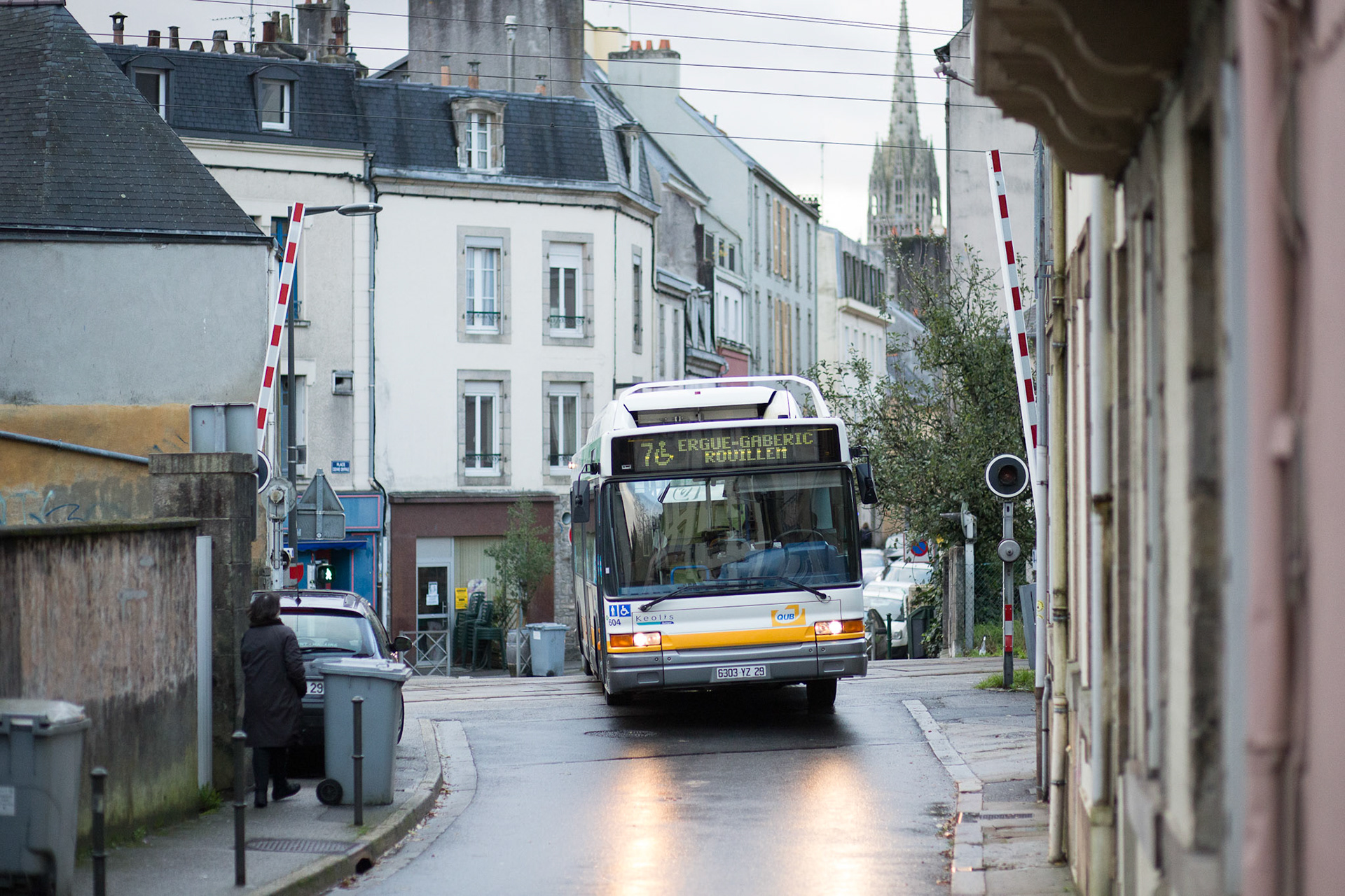 La RN 165 entre l'échangeur de Troyalac'h et celui d'Ergué-Gabéric offre une très belle vue sur la ville de Quimper. Cela met en évidence le contraste entre les zones urbaines et la campagne très présente tout près de la ville.